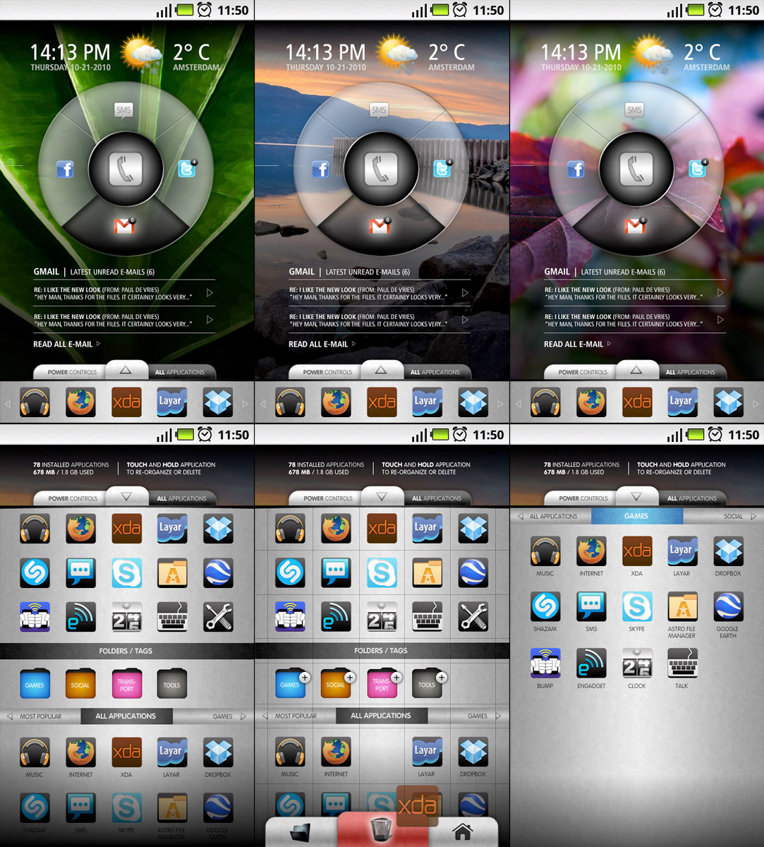 If you thought the LauncherPro was good, take a gander at this new homescreen replacement currently being cooked by XDA member, Caemgen. Upon completion, the app is expected to feature a cool app drawer, a customizable dock and the WonderWheel, a unique way to give quick access to the most used functions on your beloved Android. The app is still in its infancy but seems to show a lot of promise looking at the screenshots and the video accompanying them.