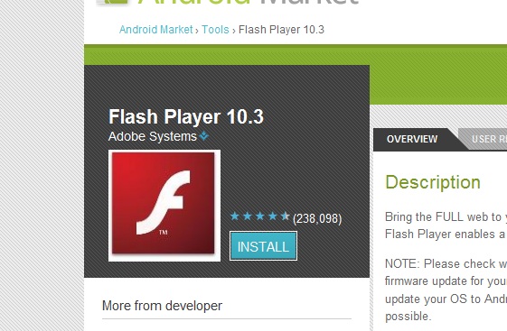 If you have visited the Market recently on your Android smartphone/tablet, you might have noticed an update for Adobe Flash waiting to be installed, which will bring the version to 10.3. There’s nothing much different that the end user will notice but rest assured that the update will make the app more secure, less buggy and compatible with more Android devices. The update is designed to work with all the recent Android flavors starting from Froyo to the newest Honeycomb OS.