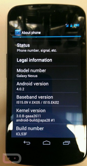 The build number is ICL53F and it is newer than the 4.0.1 (ITL41F) update. We’re not expecting drastic changes from Android 4.0.1, but rather minor last minute adjustments before tomorrow’s launch.