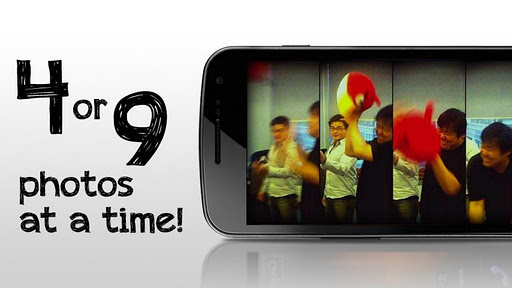 • Supports combining 4 or 9 photos. You can choose a time interval from 0.1s to 5s and start capturing photos by one click only, or you can use the custom mode to take photos one by one