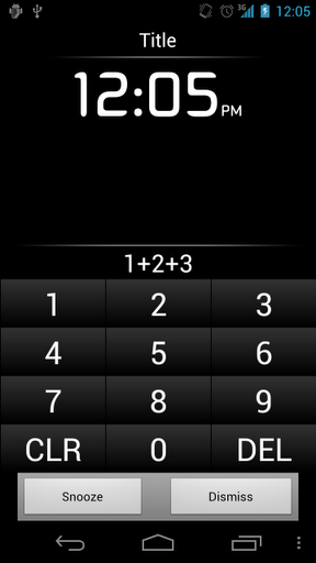 - Math alarm clock (require math problem to be solved to dismiss or snooze alarm clock)