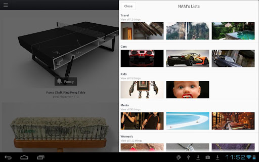 Share: Option to instantly share your fancies via Email, Twitter, Facebook, or Tumblr: social integration to share item with contacts outside of the Fancy community