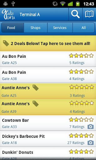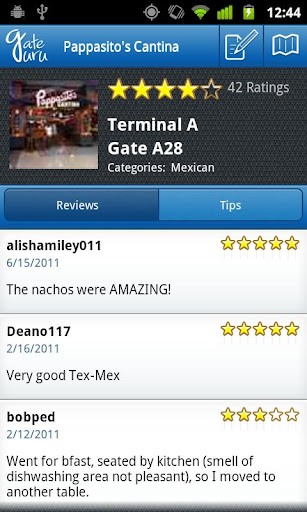 • Access to real-time ratings, reviews, tips and photos on airports, terminals and amenities