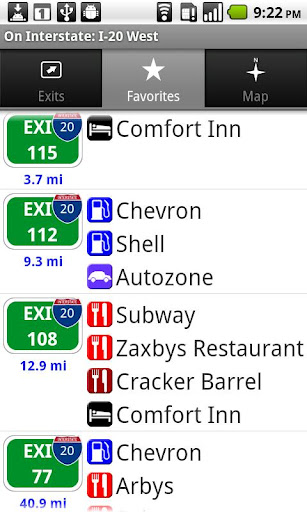 iExit is a valuable tool to have on the road whether you travel on a consistent basis or want to be prepared for your next family vacation. The app’s easy to use interface makes locating points of interest quick and pain-free. There’s nothing worse than driving without direction desperately trying to find a sit downĀ restaurantĀ or hotel when you need it the most. Save yourself the stress and before you decide to travel make sure you have iExit as one of your road apps.