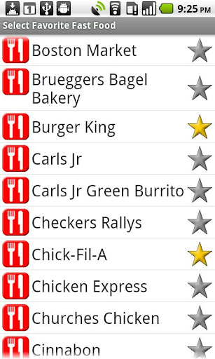 The app’s directory of major restaurants and hotel chains allows you to “star” them to add to your favorite list. Once an entry has been added to yourĀ favoritesĀ that brand will be prioritized over other entries along your route. Of course, Starbucks made it to my favorites list so I am never without my coffee fix on the road.