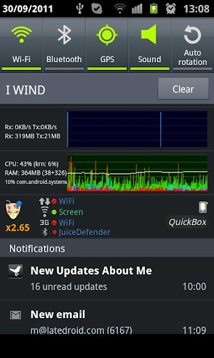 Juice Defender disables battery draining functions on your device (like 3G and Wi-Fi) whenever your device goes into idle mode. Idle mode is whenever your screen turns off. Simply turn the screen back on and the radios click back to life. Additionally, Juice Defender manages your apps and scales back the CPU while your phone is in idle mode. After trying out the basic free version of Juice Defender and seeing the drastic change in battery life, I will most certainly be investing into the Ultimate Juice companion app. Ultimate Juice promises a wider variety of battery management features and settings.