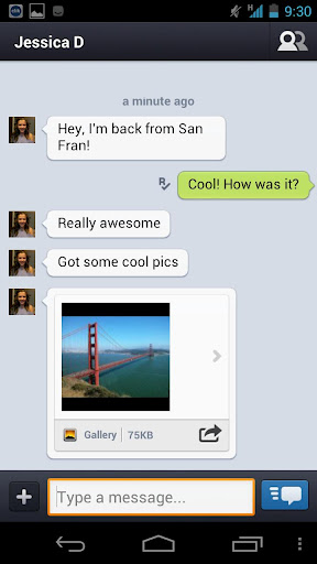 The Kik Messenger app for Android takes after the infamous BlackBerry messenger platform and lets everyone else that doesn’t have a BlackBerry device message their friends for free regardless of what platform they are on.The app is quick to download, easy to use, and now offers a robust set of features. You’ll be surprised at how many of your friends are already using it. You can chat, send pictures, and take advantage of the app’s push notification features so you’ll never be left out of the loop again.