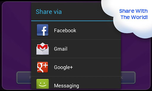 • Share your performances with friends via Google Plus, Email, Facebook, Twitter, or SMS