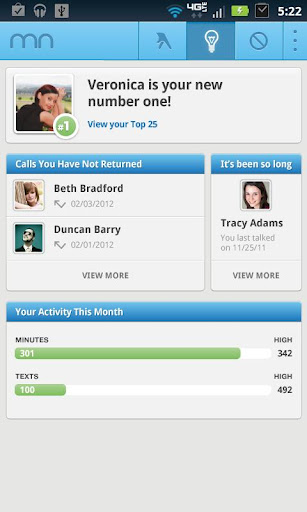 • View all contacts with phone numbers, your top 25, and everyone you know on Mr. Number