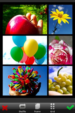 - Dashboard displays the following options: photo, camera, effects, collage, draw, more, me, and gallery