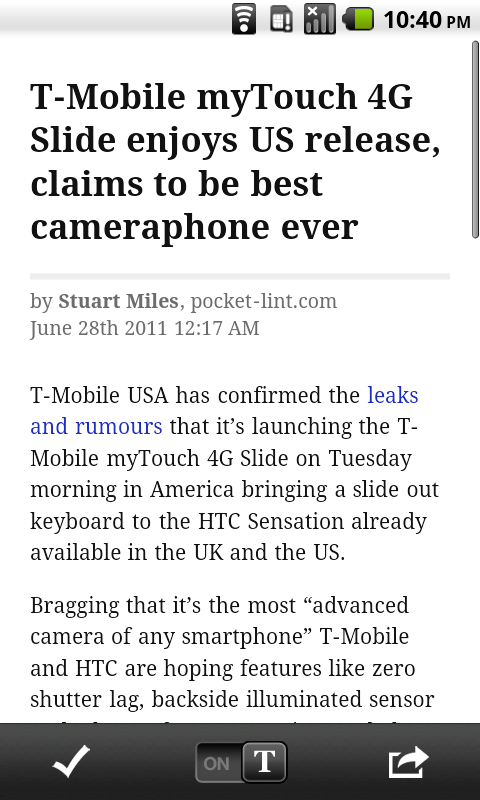 • Articles render fairly quickly, with most articles ready to read offline right after you send it to Read it Later