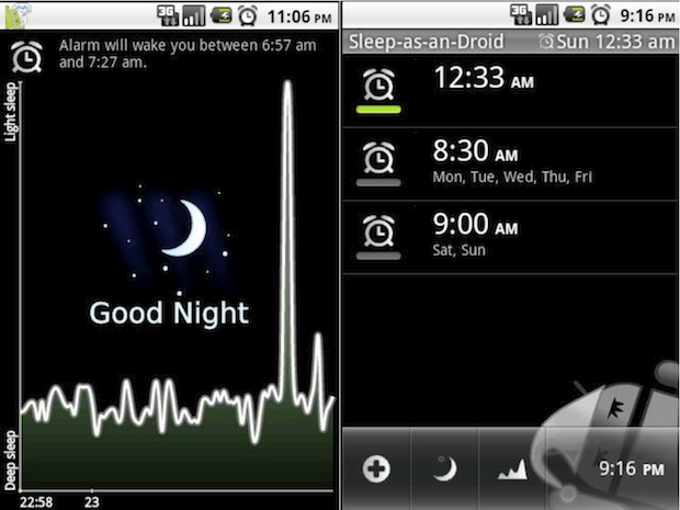 Sleep as Android is both an alarm clock and an efficient sleep tracker. Each night, before you go to sleep, you set the app into a mode that reads from your device’s gyroscope. Then lay your device on your bed and get to snoring.