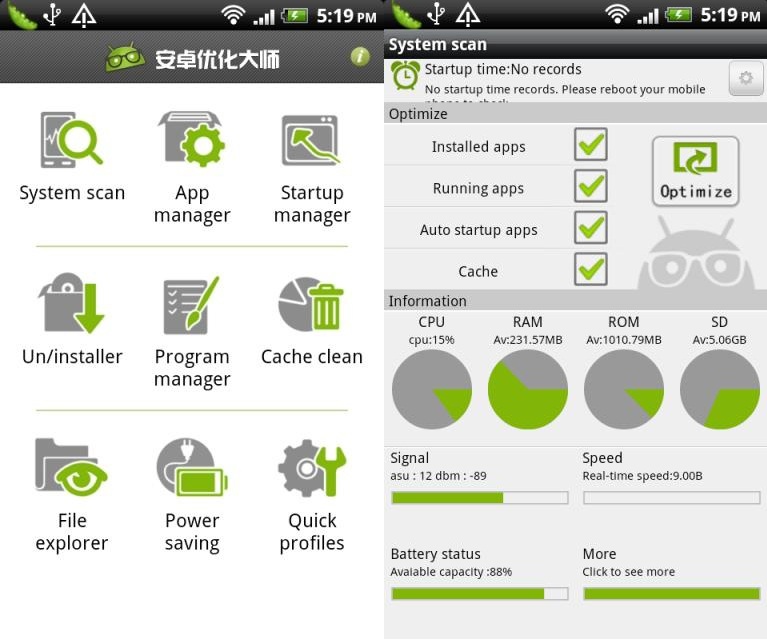 Here are a few components that the Android Optimizer has: