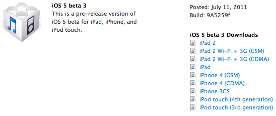 Apple released their iOS 5 beta 3 software for developers today. The new build is compatible for iOS devices including the iPhone 4, iPhone 3GS, iPad 2, iPad, Apple TV, and third and fourth-generation iPod touch devices. If you paid the $99/year developer access fee you can obtain the update now through Apple’s dev center site.