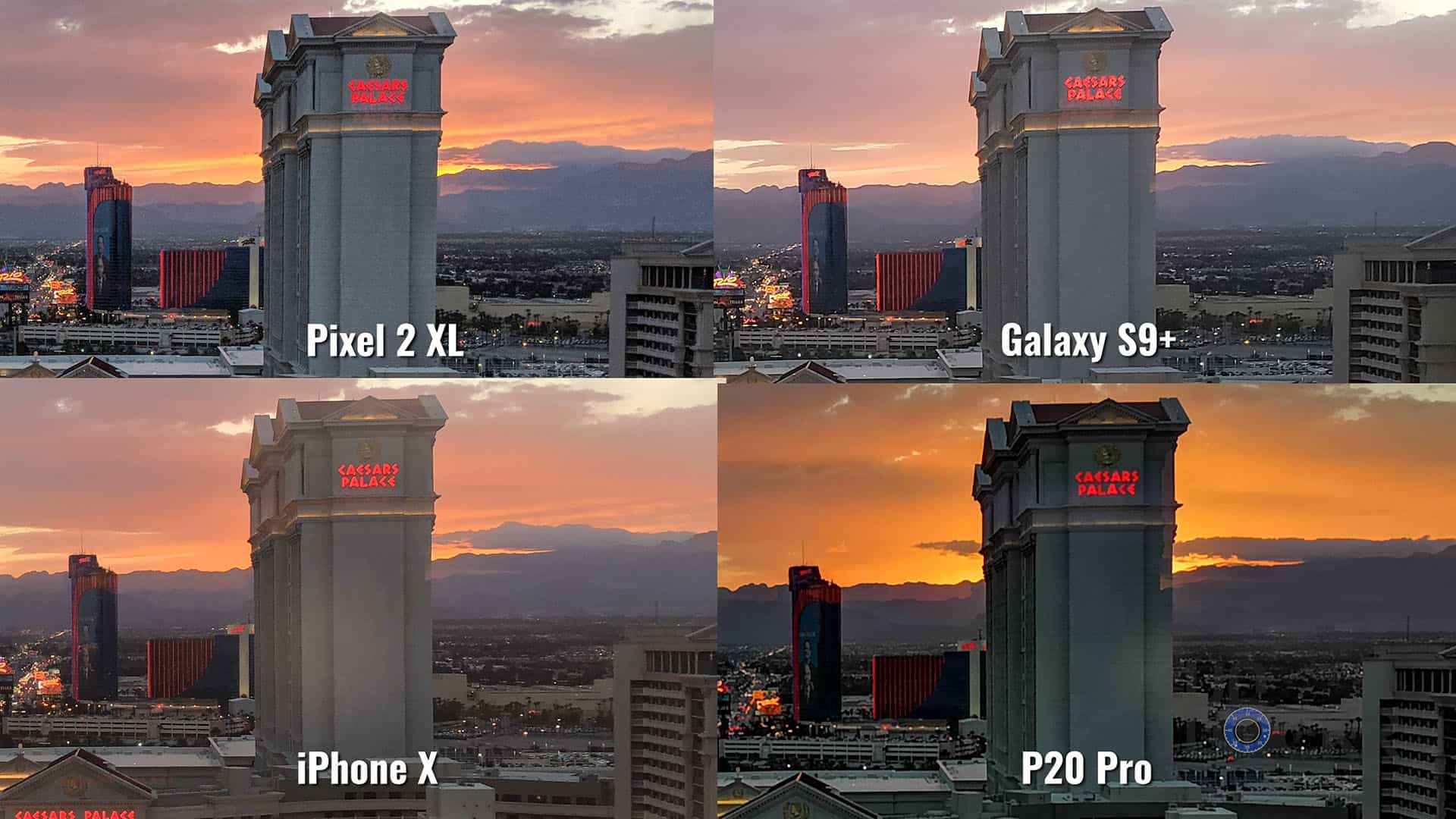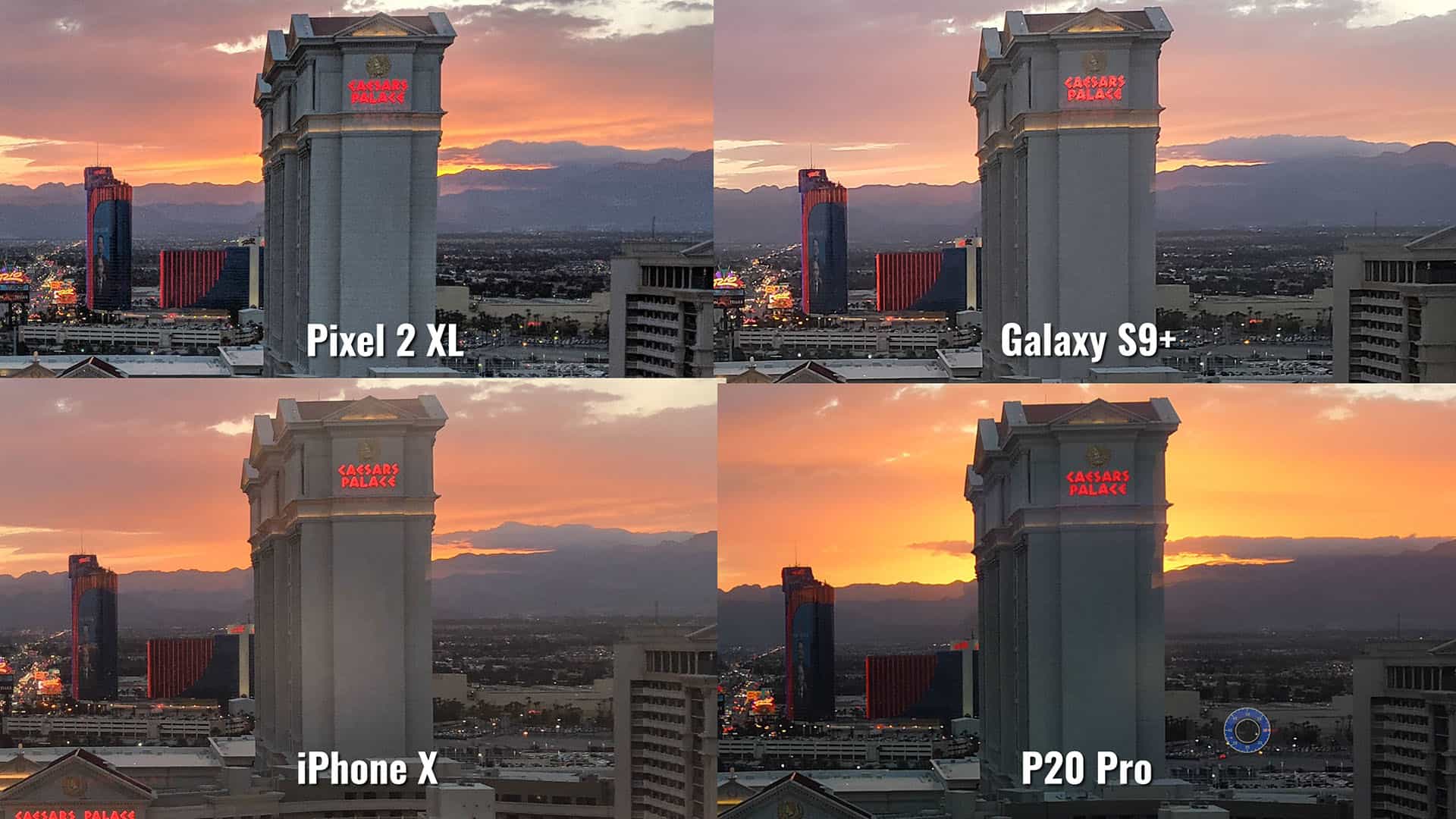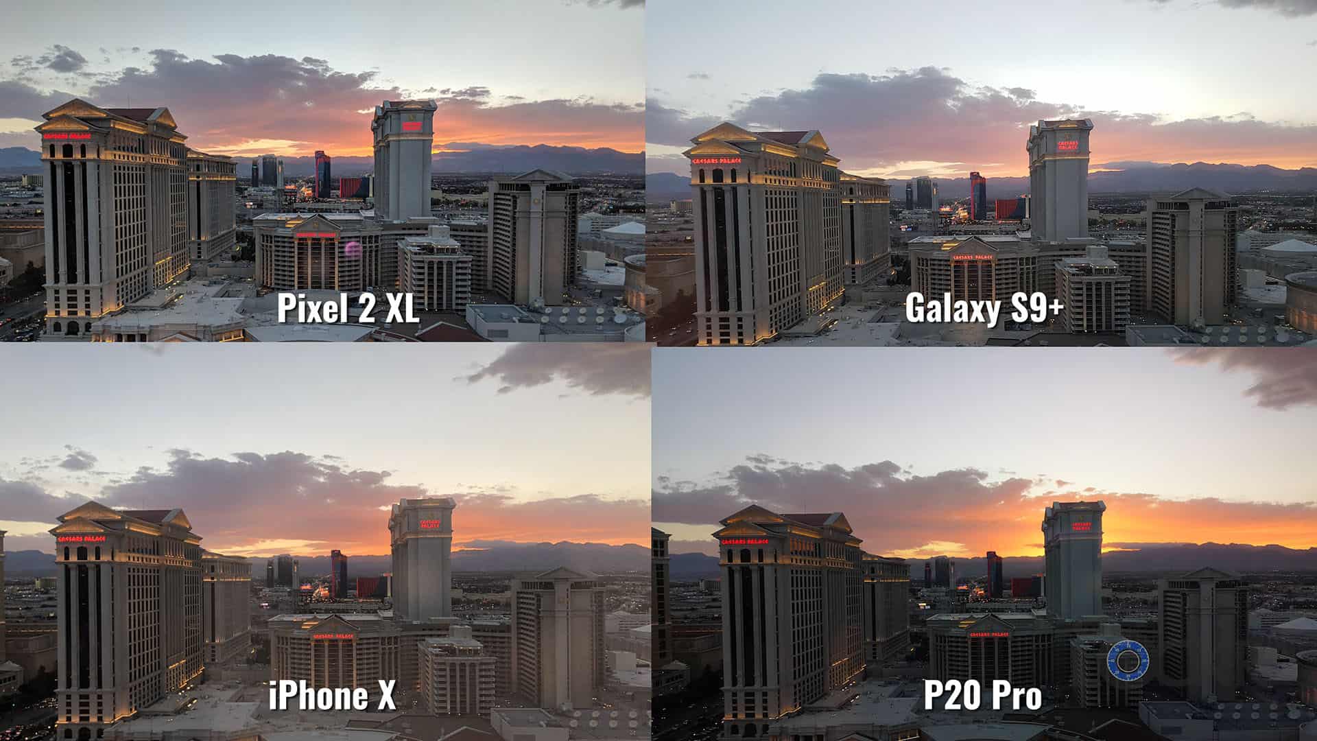 - There were artifacts in all of the images when zoomed in: Pixel 2 XL and Galaxy S9 Plus moved the Caesar sign, while all of them besides the Pixel let some of the sunsets in through the building. Blaming this on HDR across the board.