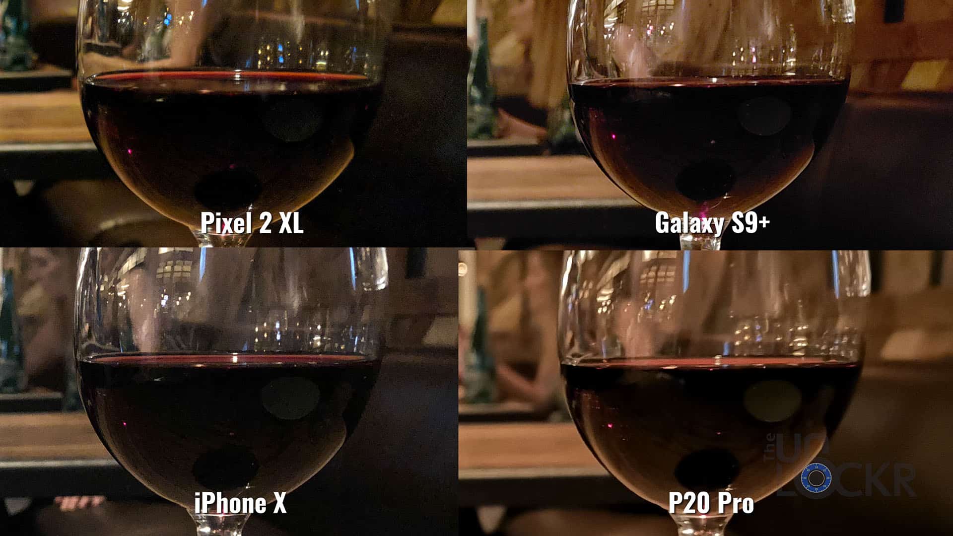 - P20 Pro though has the most natural bokeh (thanks to the larger sensor, I’m sure). The glass is still in focus while the background is blurred more than the others.