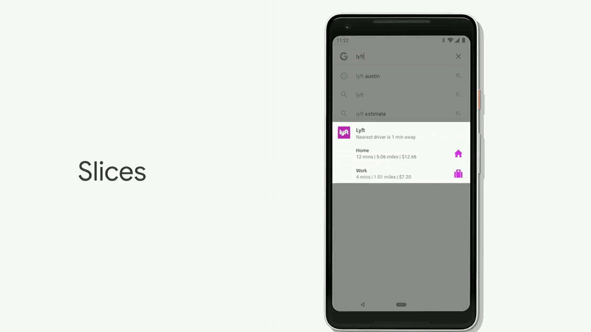 • Slice brings slices of apps and actions from them directly into search instead of having to open the app itself (i.e. searching Lyft in the search bar might automatically give you the ability to call one without opening Lyft). Slice is coming to developers next month.