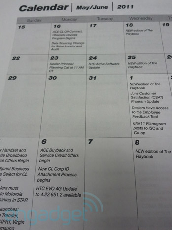 Late last month, Sprint had mistakenly put the HTC Evo 4G on sale with Android 2.3 on its online store, but as it turned out, Froyo was still the OS onboard.  The carrier is now looking to rectifying this error by updating the Evo 4G for real, if an Engadget tipster (and his convincing snaps of the Sprint event calendar) are to be believed.  The update is set for a rollout starting June 6th, next Monday, but antsy users could get it as early as this Friday, by checking for the update manually.