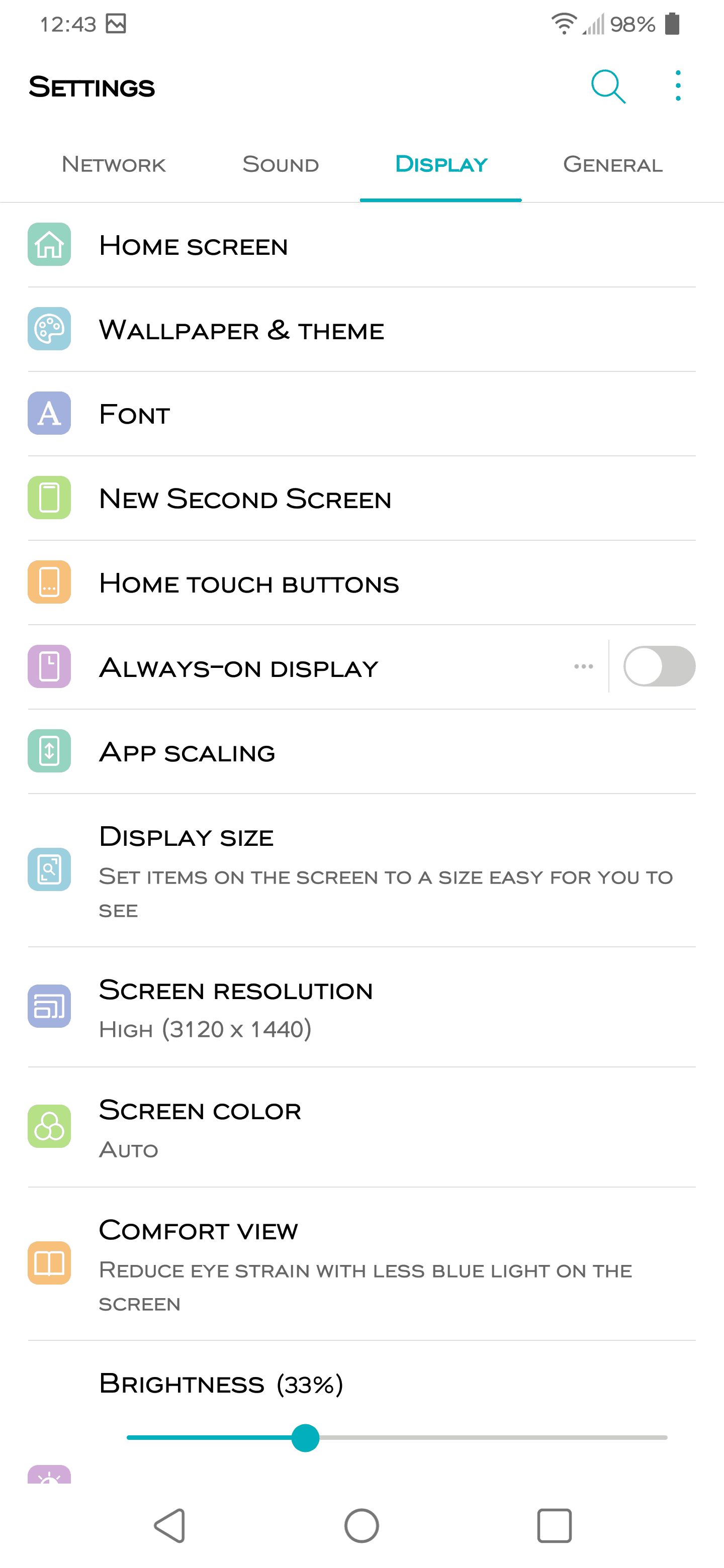 2. Tap on the display tab.