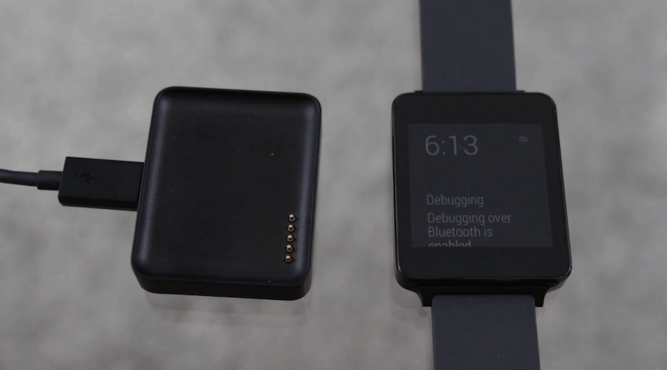 1. Plug the LG G Watch in via USB using the cradle it comes with.