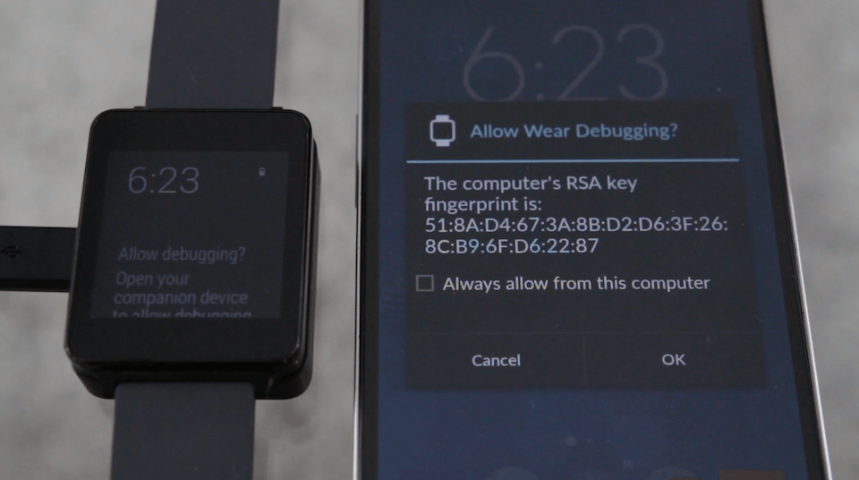We use USB debugging and ADB to send commands to the device in order to change its operating system and get it to do what we want. In the case of the LG G Watch, you can use USB debugging to then connect to the device, root it, and even flash a custom ROM to speed up it’s performance and change the UI.