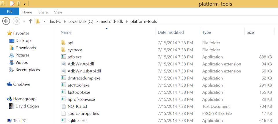 3. On your computer navigate to C:/android-sdk/platform-tools/ (or wherever your platform tools folder is if you didn’t follow our ABD procedure).