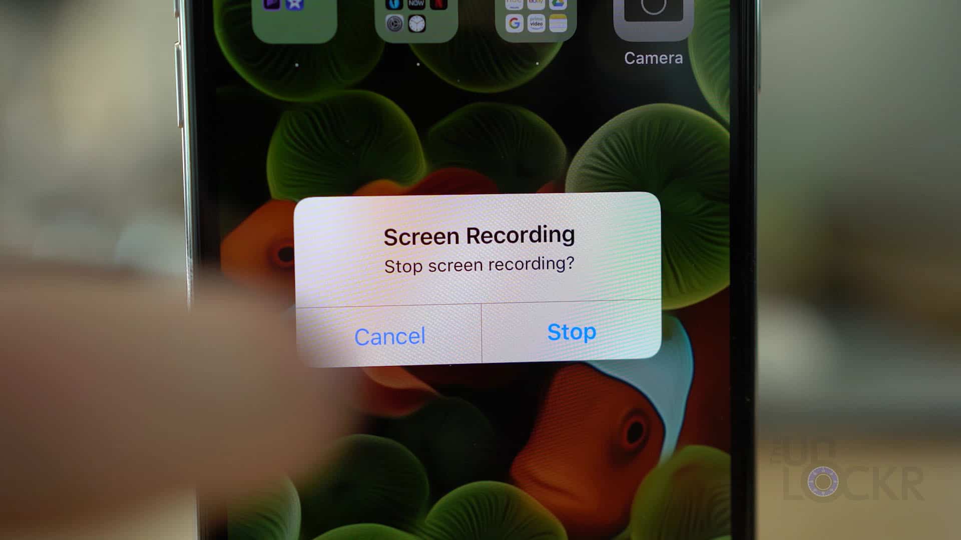 - To stop recording, simply tap on the red status bar at the top and then tap Stop.