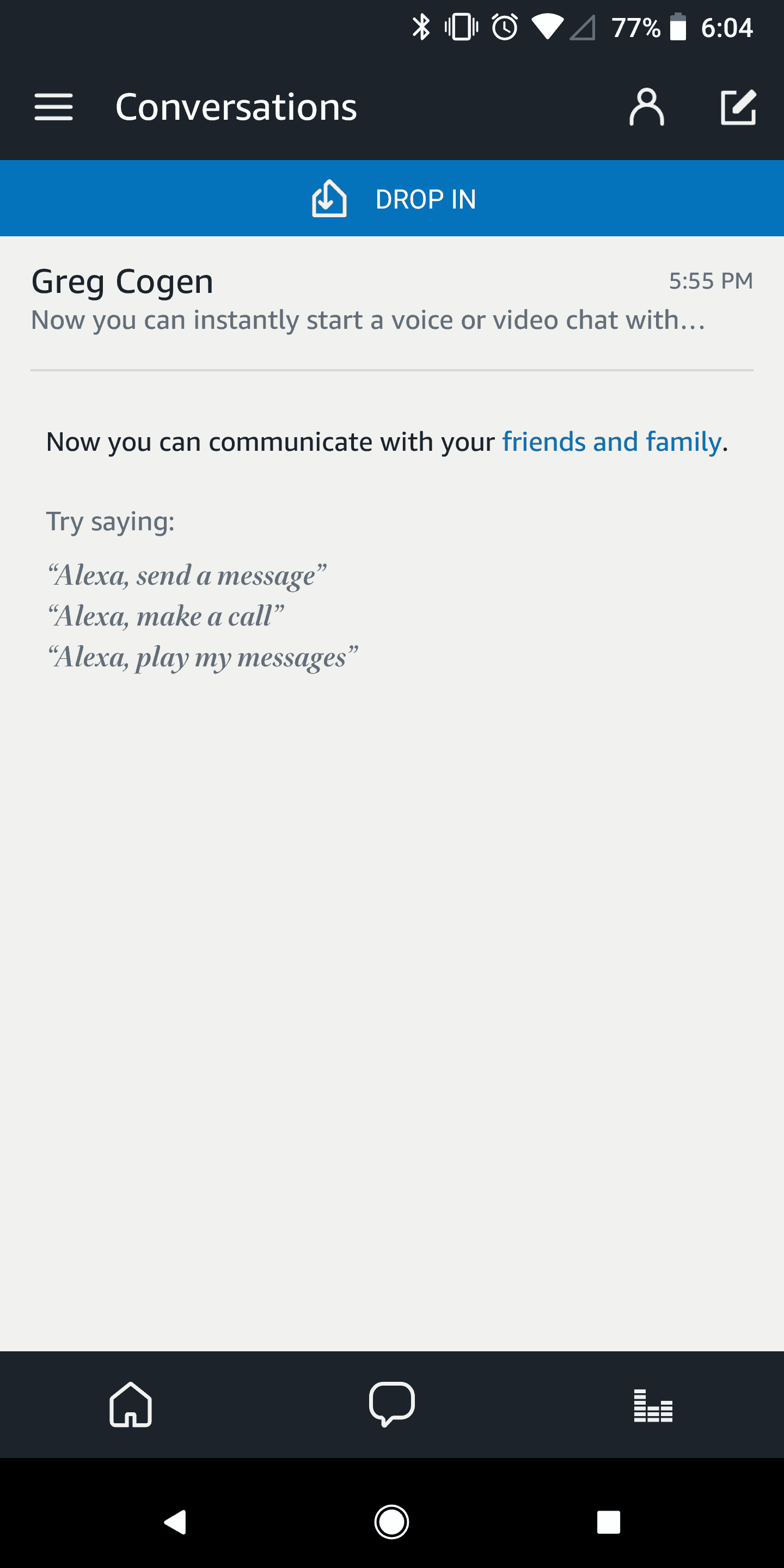 To use Drop-In to connect to other people’s Echo devices, you can simply tell any Echo device you have, “Alexa, drop in on [Contact’s Name]” and if they’ve allowed you it’ll let you drop in. Alternatively, you can also: