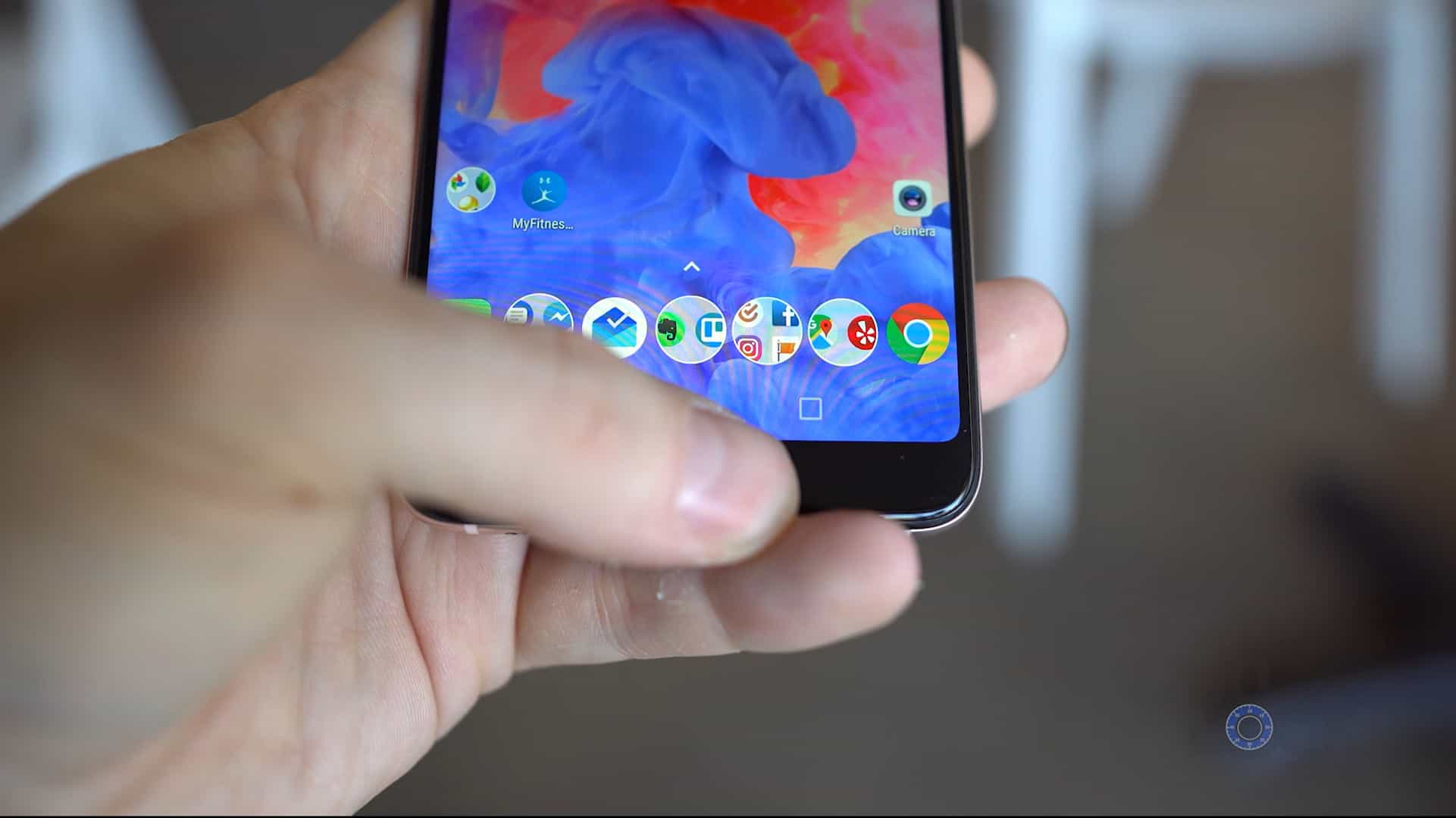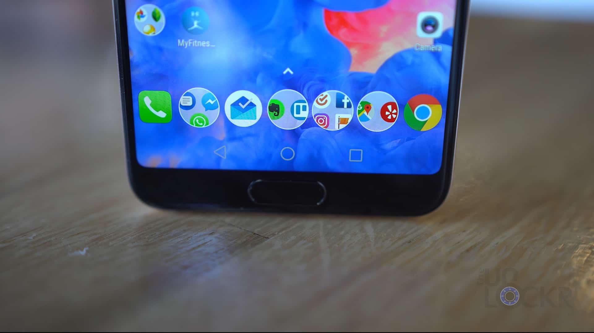 At the bottom of the phone, we have a capacitive home button that is also the fingerprint sensor. The button can also be enabled as a form of system navigation if you want by going into settings and hiding the software navigation buttons and then using a tap, tap and hold, or a swipe to get back, home, and multitasking instead.