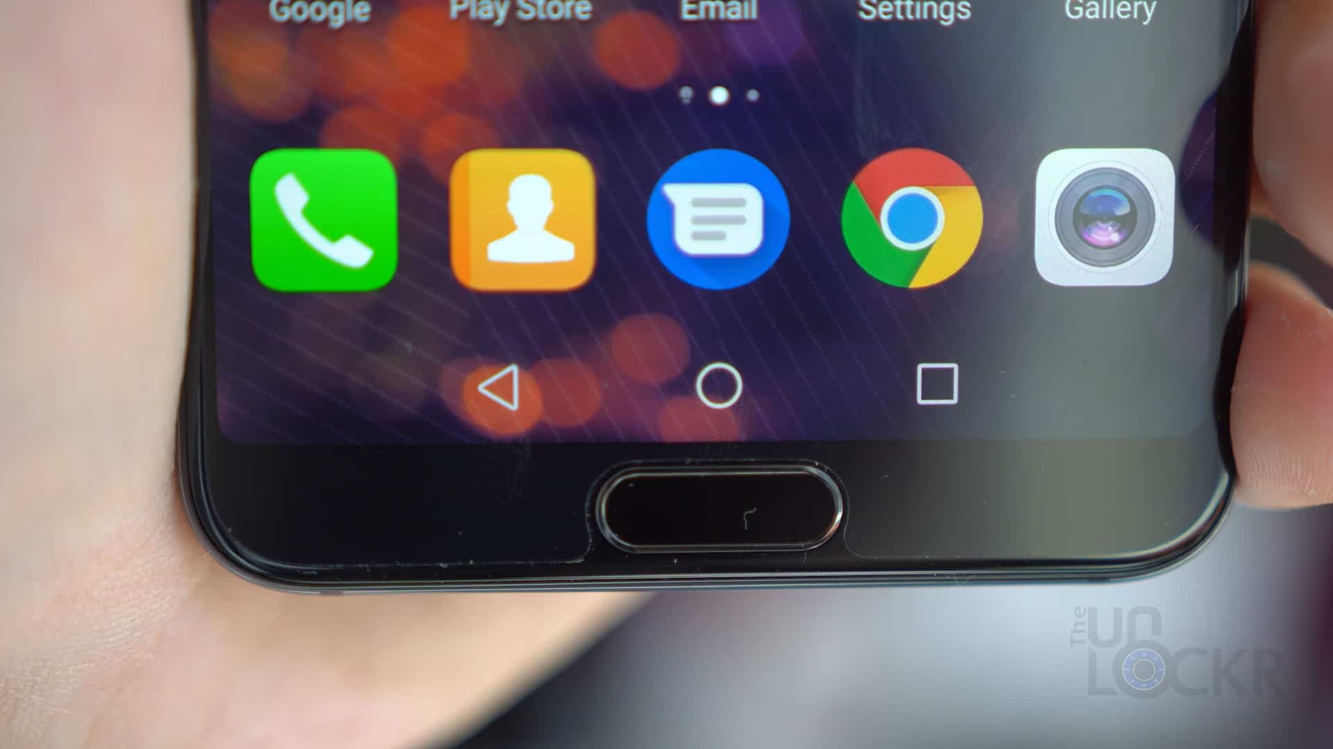 At the other side of the screen, we have a front-facing fingerprint sensor that Huawei allows to also be used as navigation where you can turn off the on-screen navigation buttons and use a system of swipes and taps to get home, go back, or open multitasking, etc.