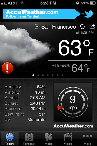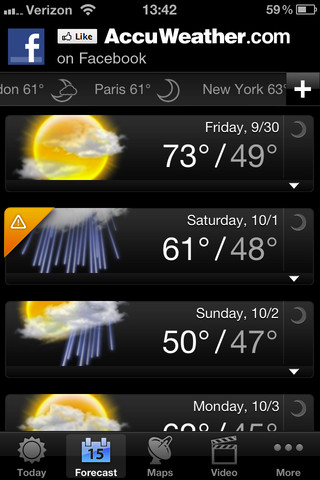 AccuWeather is available for free in the iTunes Store. Compatible with iPhone, iPod touch, and iPad.Requires iOS 4.0 or later. iTunes Link