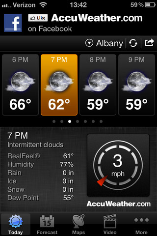 Being an outdoor person, most of my weekly activities have to be planned around the weather. With AccuWeather I can always see the current weather at a glance and easily tap through the next 15 days of weather with the app’s large icons. I love that this app has numerous weather videos from both local and national weather stations making it easy to stay on top of the news when I can’t get to a television. While other apps have only one generic national news forecast, AccuWeather provides several videos for you to choose from to get the most accurate forecasting. My favorite part of the app is the Lifestyle tips, which provide you with suggestions based on either outdoor, sporting, or health related activities. AccuWeather even tells me if it’s going to be a bad hair day! It doesn’t get any better than that. If you’re looking for a straight forward weather app that provides up-to-date data and lifestyle tips, then give AccuWeather a try. You’ll be hard pressed to find a better weather app for iOS.