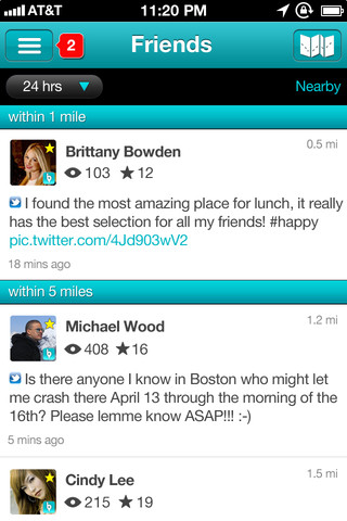 • Friends: A live feed of your friends updates with photos and a map view with friend icon view