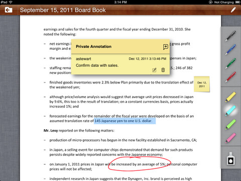 BoardVantage Collaborate for the iPad is the perfect solution for directors or administrators looking for a business tool that can facilitate secure meetings without the bulk anywhere at anytime. This app beautifully combines the iPad’s rich media features with a robust list of functional tools sure to help you get through your meeting. If you happen to be a CIO in the market for a must have app for the head honchos in your company, then BoardVantage Collaborate is an app worth looking into.