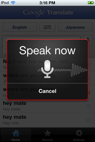 Additional highlighted features of Google Translate include a favorites option and full screen mode. The favorites option allows you to tap a star next to any phrase or word that you want to keep as a favorite for reference later. Anything you have starred will display in a list form and can be accessed by tapping the star icon. The full screen mode allows you to enlarge the screen of translated text. This is useful if you need to communicate to someone in a noisy environment. By using the full screen mode the other person can easily read what you have translated versus trying to hear you over the noise.
