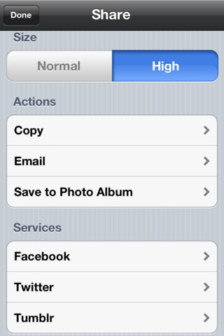 - Instantly share the image via Facebook, Twitter or Tumblr
