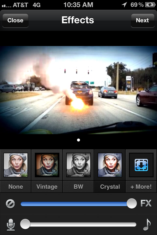 You can capture a video directly from your iOS device and then upload it to the Viddy app. You can then apply any variety of “cinematic production packs”, or better known as filters or effects, to really enhance your video footage. Cinematic production packs include features like advanced camera exposure, focus, white balance, audio metering, the ability to add visual effects, transitions, and music. The free packs include the following filters: retro, glam, vintage, solarise, red, BW, exposed, junkd, 3D, and hued.