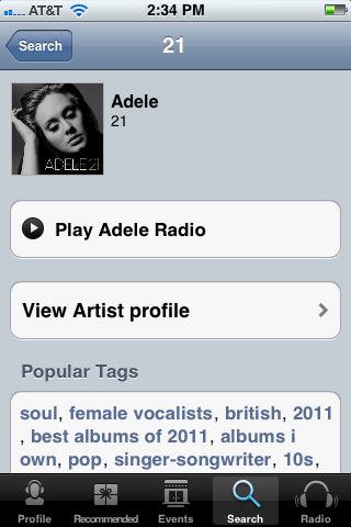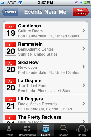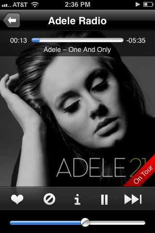 What’s cool is that you can see tour dates and concert event information for various artists found in your playlists in a calendar view. The best aspect of Last.fm is that you can skip as many songs as you want. I hated that with Pandora you could only skip six songs per hour, or 12 per day before you were stuck with whatever song they had lined up for that playlist. I also enjoyed hearing a solid selection of lesser known artists versus only mainstream artists that you find in other music apps. I’ve actually downloaded a handful of songs to my iPod that I would have never found thanks to discovering the artists on Last.fm.