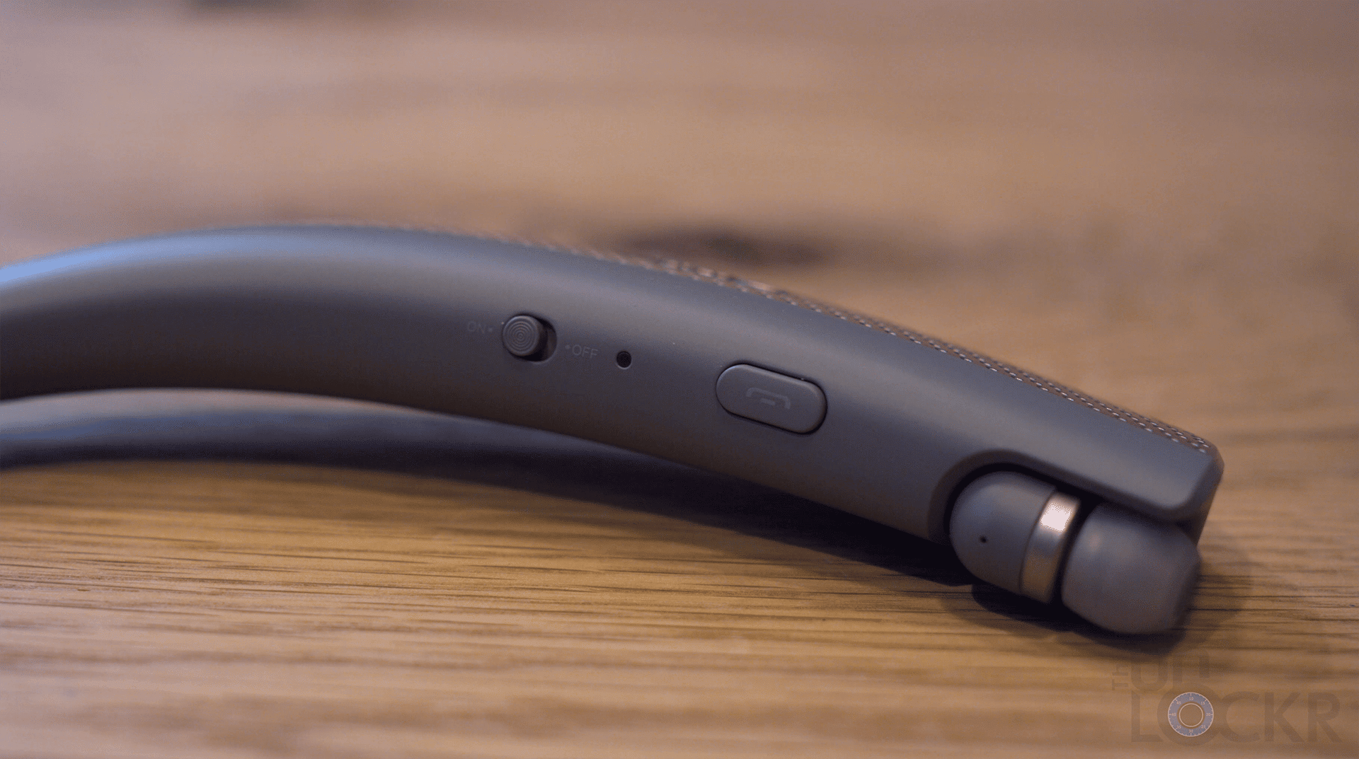 The device I was using was the LG Tone Studio one of the newest gadgets in LG’s Tone lineup. You might be used to seeing these on joggers with earplugs coming out of them and into the person’s ears. Same line of products, but very different use case.