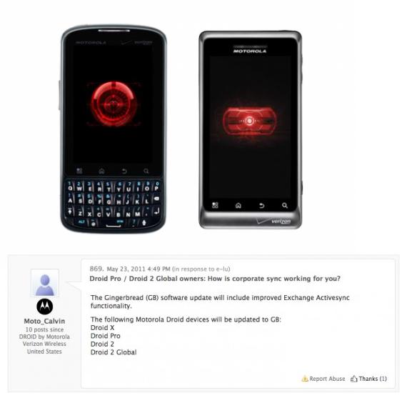 In answer to queries from disgruntled Droid Pro and Droid 2 Global users about problems with corporate sync, a Motorola employee shot back with a reply saying the two devices will indeed be getting the Android 2.3 update very soon, along with the Droid X and Droid 2, fixing the said issues in the process.  There’s also news that Motorola has the Gingerbread update already prepped for all the devices listed but is waiting for the go-ahead from Verizon to actually release them – something that Motorola has previously failed to do (case in point – Motorola Milestone) in the past.