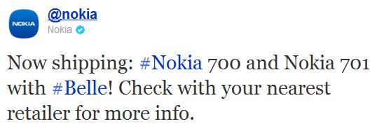 Confirmed in a tweet by Nokia, the company will be shipping two of the three Symbian Belle handsets to retailers as promised. Nokia stated in August that the trio of Belle smartphones would be ready in time for a Q3 launch, and it appears that they are making good on their original timeline.