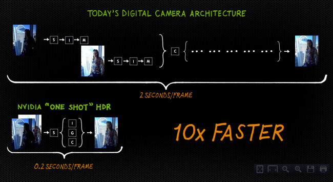 Among the Tegra 4 processor’s breakthroughs is its Computational Photography Architecture, which automatically delivers high dynamic range (HDR) photos and video by fusing together the processing power of the GPU, CPU and the camera’s image-signal processor.Its HDR capability captures images, including those taken with a flash, the way they are seen by the human eye — with detail in both bright and dark areas.