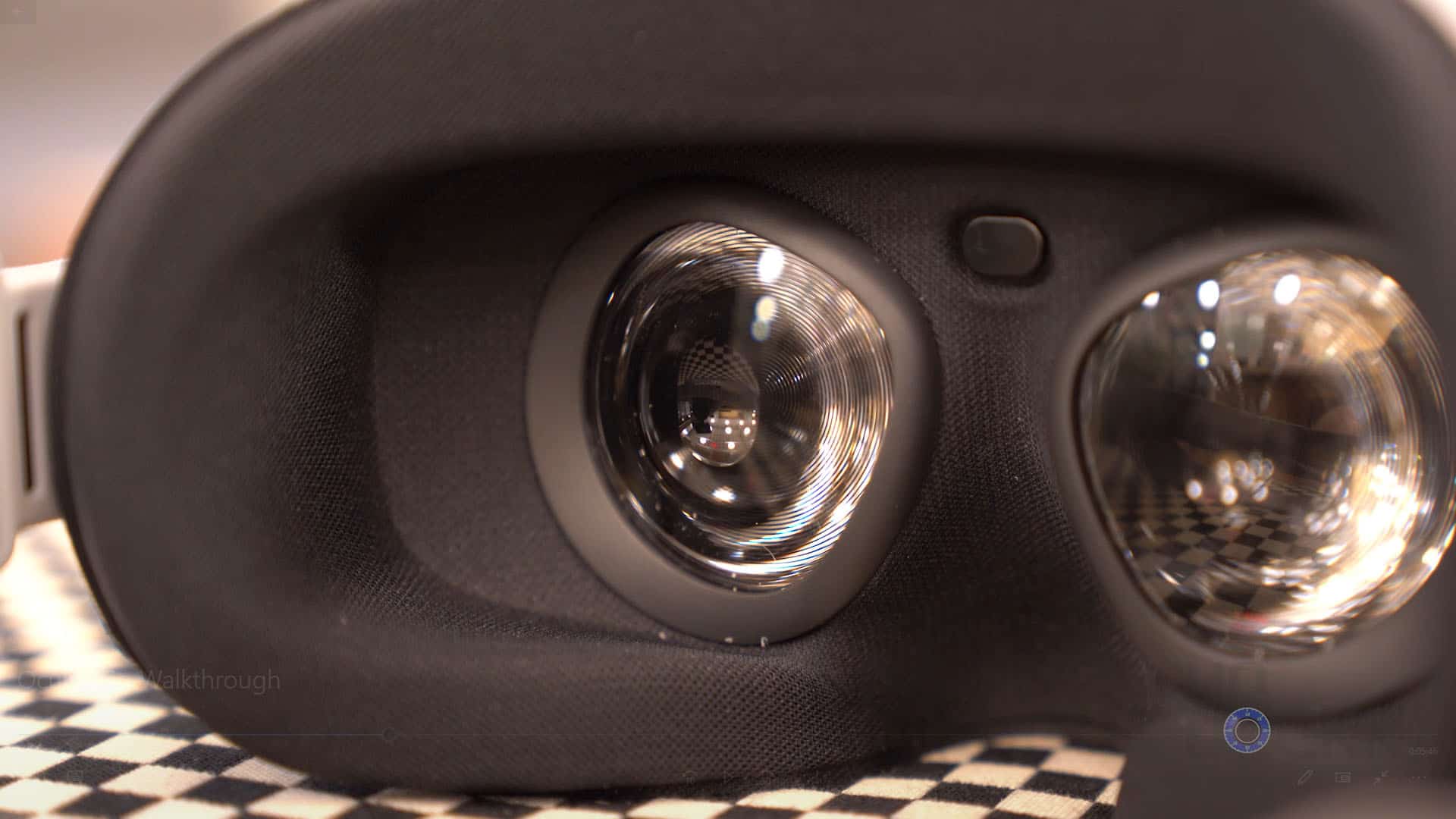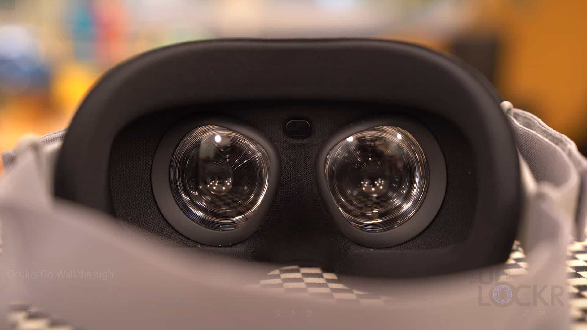 Inside the Oculus Go, we have our two lenses with our LCD “fast-twitch” display that has a resolution of 2,560 x 1,440 (or 1280 x 1440 per eye). This resolution is actually higher than the more expensive Oculus Rift’s 2,160 x 1,200 but it apparently has a lower refresh rate of around 60hz vs. the 90hz of the Rift. So think slightly sharper, but slightly less smooth.
