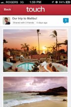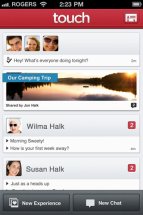 Highlighted Touch features include the ability for users to determine specifically who to share a message or photo with, and users can add new contacts into a conversation whenever they want. Additionally, users will be able to see when someone is typing, and exactly when your messages have been read.