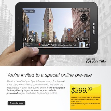 Samsung Galaxy Tab on preorder from Sprint for its Premier customers