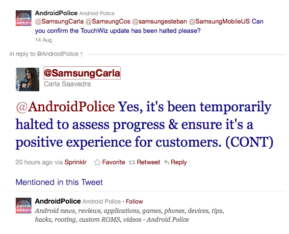 Samsung’s Carla Saavedra tweeted that the update has been “temporarily halted to assess progress & ensure it’s a positive experience for customers” and said regular service would “resume shortly” but “no specifics were given.” As we never like to hear about bricked devices, let’s hope Samsung can find a solution and soon