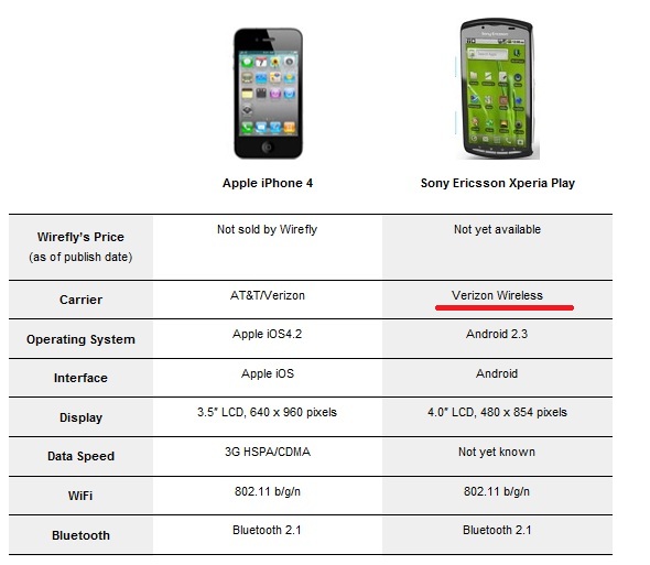 With the Apple iPhone 4 already on its way, Verizon might be lucky enough to play host to yet another great device, the Xperia Play. The Android phone has already been picked up by pretty much every carrier in the UK but this is the first we have heard of it even coming Stateside in the near future. The news has been outed by Wirefly on its website with a side-by-side comparison of the Play with the iPhone 4, and Verizon listed as the carrier of choice for the gaming phone.