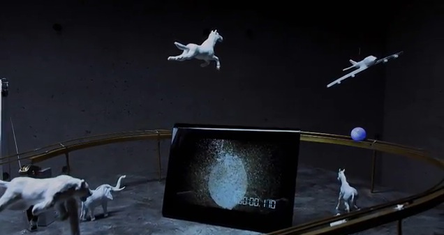 The ad features a unique mixture of levers, balls, and figurines sure to peak your imagination.