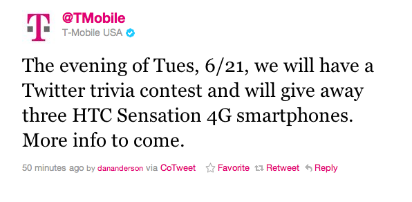 T-Mobile Twitter Trivia Contest: Three Winners Will Score the HTC Sensation 4G