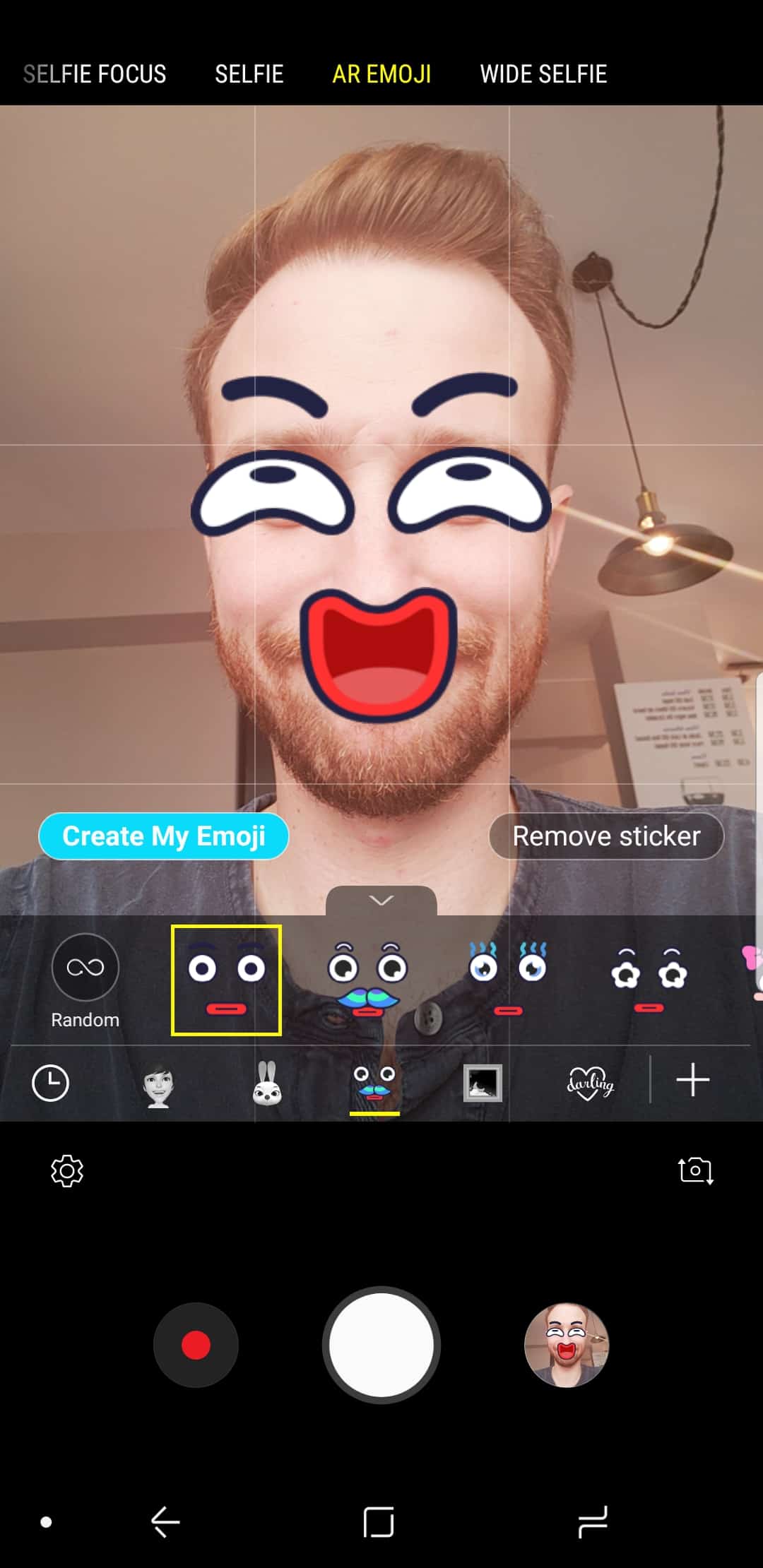 At this point, it’ll also automatically save 18 gifs of your AR Emoji into the sticker section of the Samsung messaging app that you can get to by tapping the sticker icon at the right end of the text field and send to people that way.
